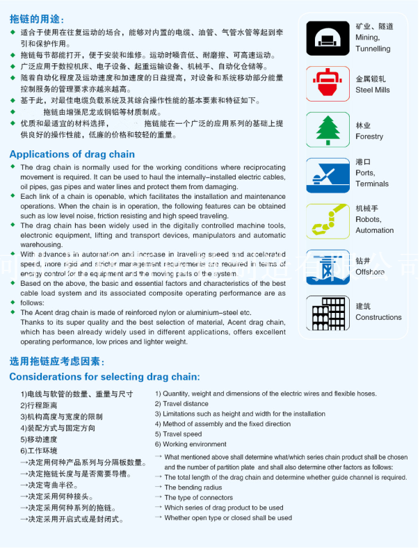 拖鏈的性能技術(shù)要求及含量
